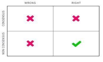 要想在市场上获得成功,你必须成为一个独立思考者,因为共识通常都是错误的。你必须要有与众不同的观点和视角。要想在股市或创业中获得成功,你就不能与共识为伍,而是要做出正确的决策。