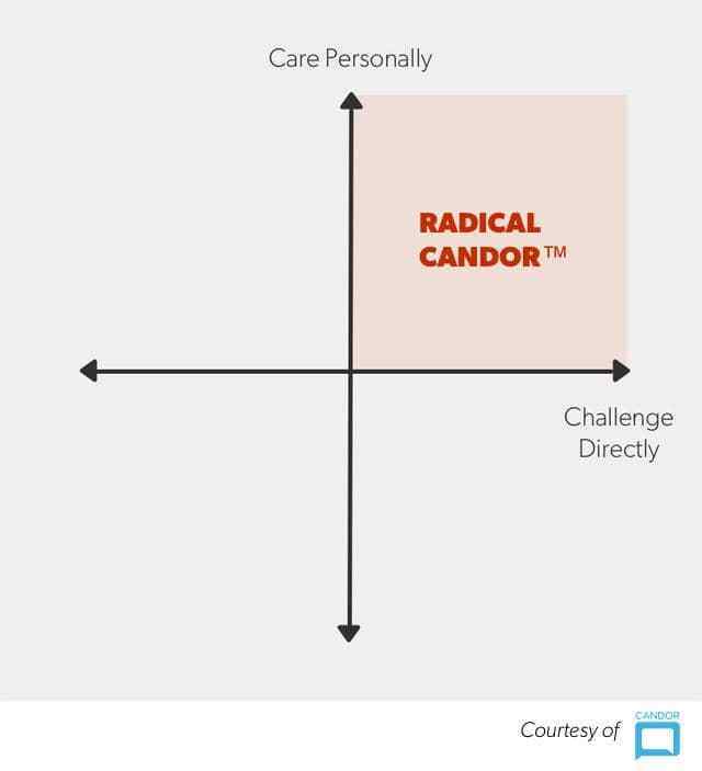上面的横轴就代表 “直接挑战”,用 Scott 的话说,就是 “敢惹怒对方”。直接挑战他人对很多人来说都是很难做到的,因为说不好听的话就会显得没礼貌。然而一旦你成为老板,你就必须要清楚哪些员工作做得好,哪些出问题了,这是你的职责所在。从上图可以看出 “彻底的坦率” 源于 “个人关心” 和 “直接挑战” 的结合。彻底的坦率是非常有好处的,它对事不对人。
