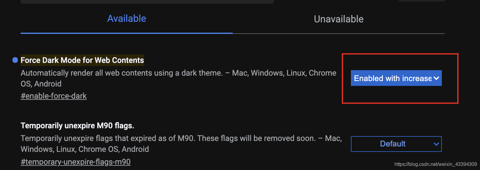 - 首先在地址栏输入“chrome://flags/#enable-force-dark”
