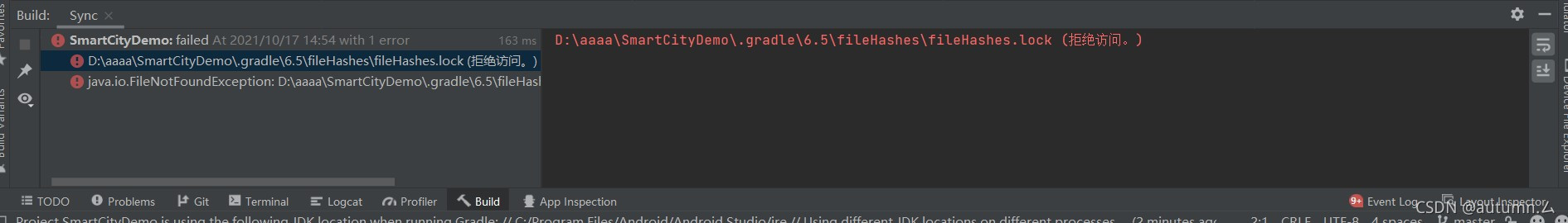 2.项目位置..\.gradle\6.5\fileHashes\fileHashes.lock(拒绝访问)