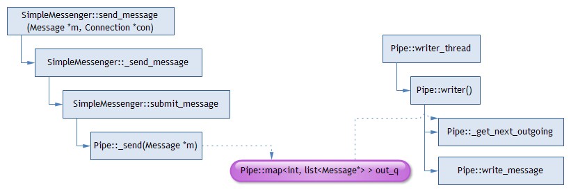 SimpleMessenger发送消息的流程如下,可以看到Connection是上层的,暴露在外的数据结构,所以YY哥是对的