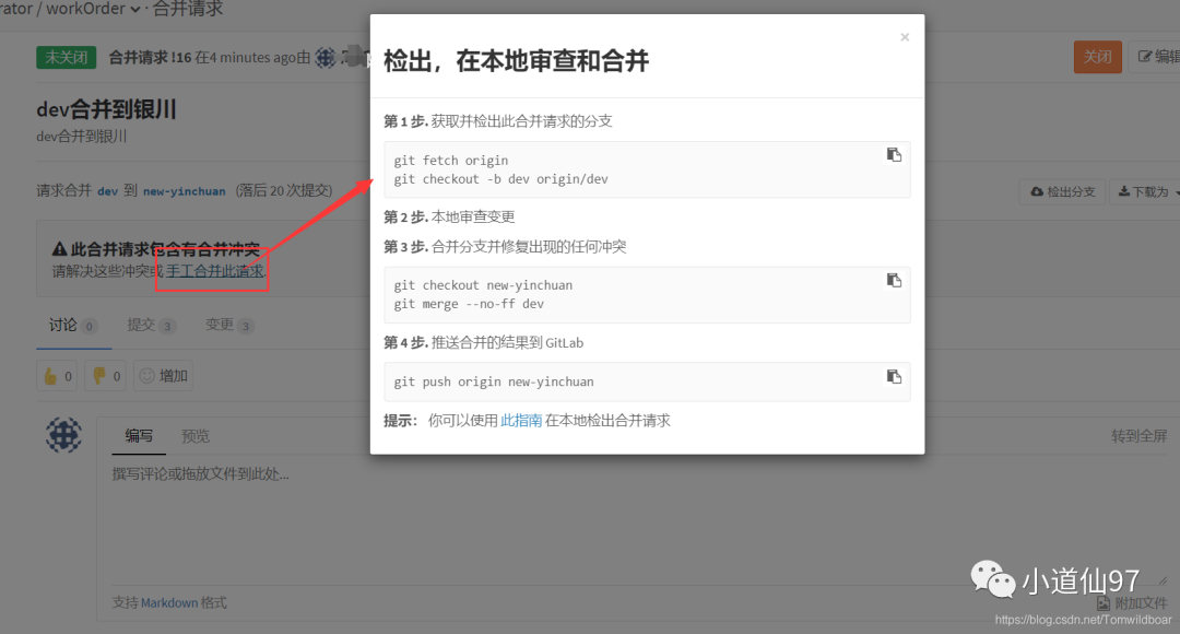 上面的命令我大致理解成:先拉取最新的dev分支,再拉取最新的new-yinchuan分支,然后把它们合并,这时候肯定有文件冲突了,然后你再去手动解决冲突,然后提交到new-yinchuan分支,这样就完成了dev合并到new-yinchuan分支了。