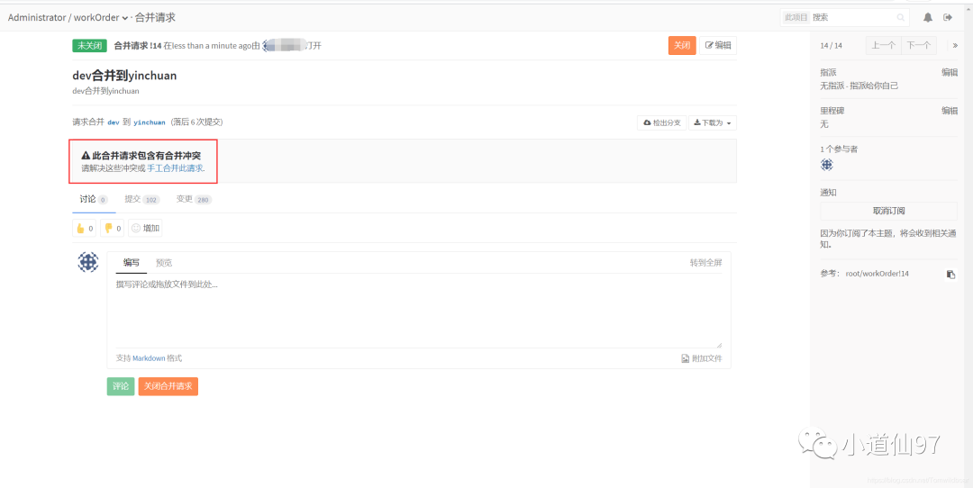 正常情况下,直接点击合并就可以了。但是如果有冲突就会如下面的这样