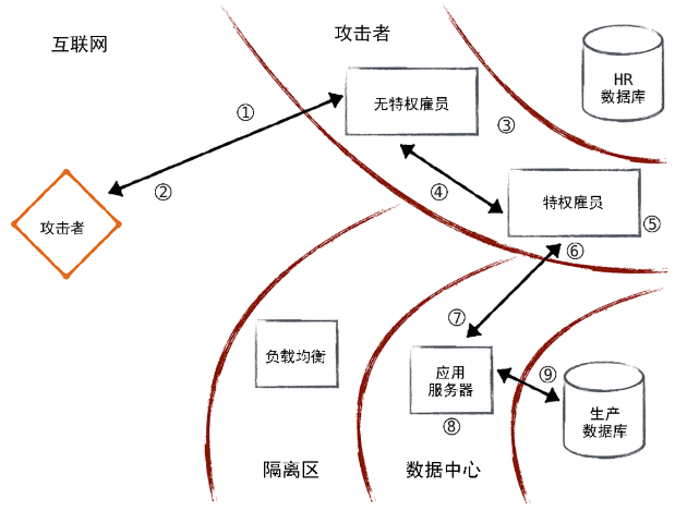 图1-8 攻击者在办公网络中横向移动,最终进入生产网络
