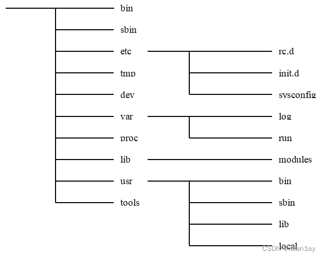 根文件系统一般都包括主要一些子目录:/etc/、/dev/、/usr/、/usr/bin/、/bin/、/var/等。