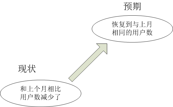 现状:和上月相比,本月的用户数减少了。在本例中,我们的目标是查清用户数减少的原因,并确保和上月相同的用户数。那么下一步要做的就是通过数据分析查清元婴,并明确所需解决的问题。