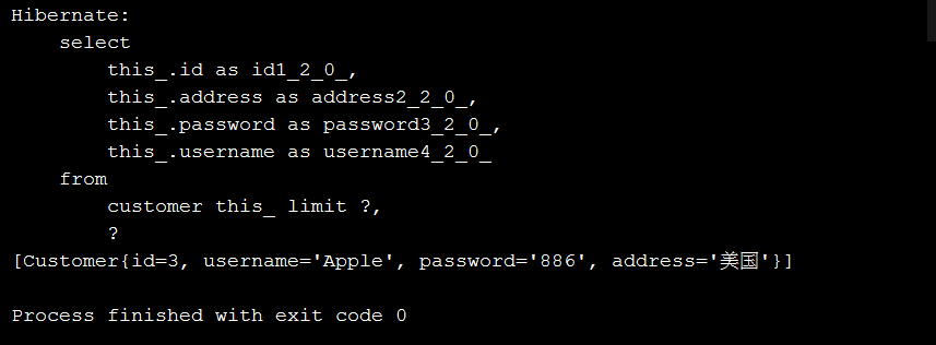 SQLQuery query = session.createSQLQuery("select * from customer");