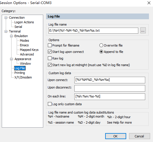 secureCRT log file的设置1. log文件的设置版权声明:本文为yangguoyu8023原创文章,遵循CC 4.0 BY-SA版权协议,转载请附上原文出处链接和本声明。原文链接:https://blog.csdn.net/yangguoyu8023/article/details/122540005