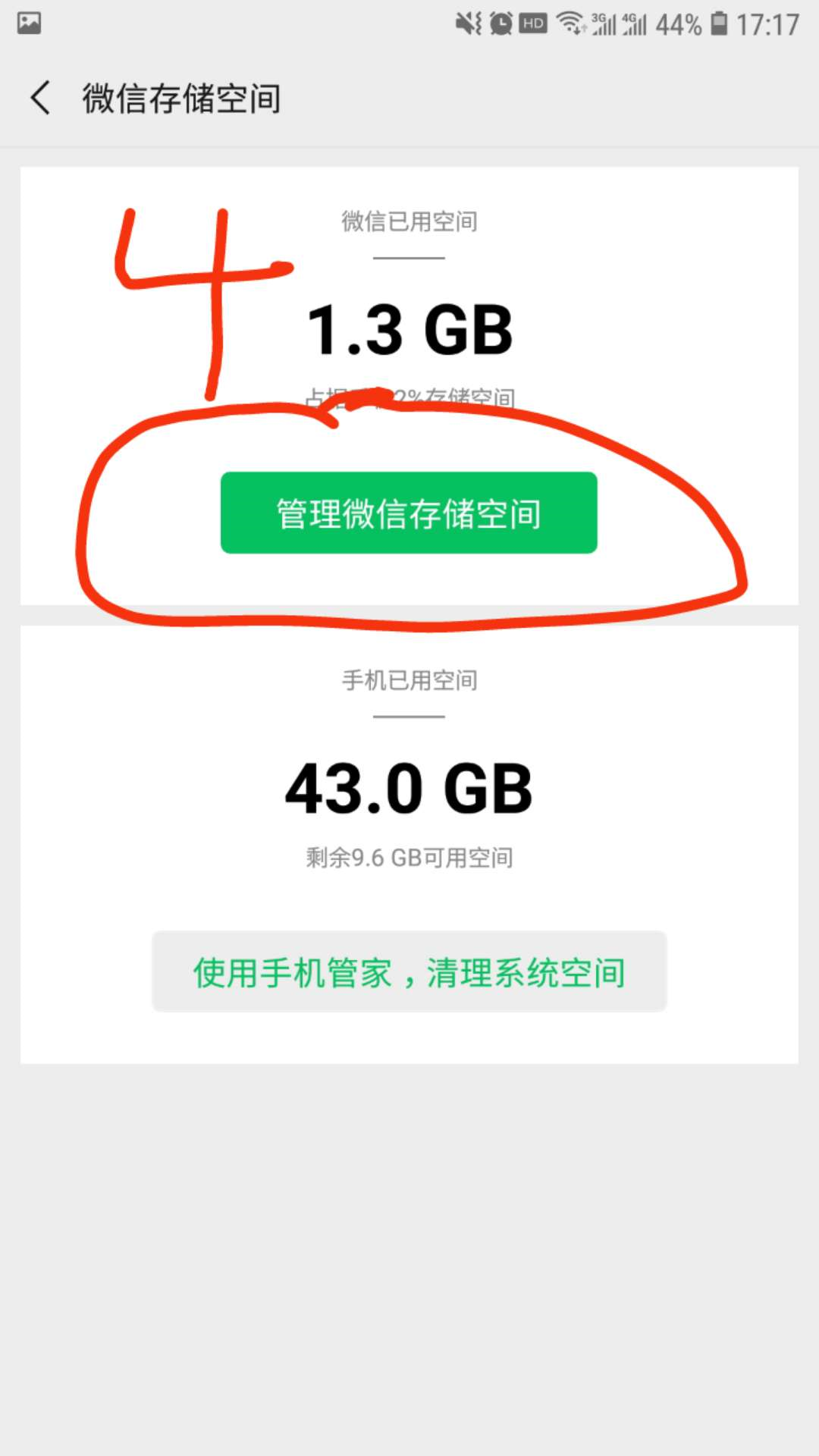 具体办法:微信》点击底部菜单栏:我》点击设置》点击通用》点击微信存储空间》点击管理微信存储空间 解决。