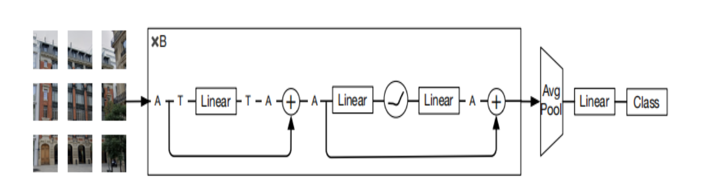 该架构是受 ViT 的启发,但更加简单:不采用任何形式的注意力机制,仅仅包含线性层与 GELU 非线性激活函数。该体系架构比 Transformer 的训练要稳定,不需要特定 batch 或者跨通道的标准化(如 Batch-Norm、 GroupNorm 或 LayerNorm)。训练过程基本延续了 DeiT 与 CaiT 的训练方式。