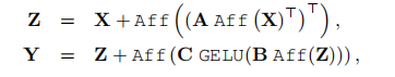 其中,表示可学习向量。需要注意的是:该层推理无耗时,因其参数可与前接线性层合并。Aff独立的作用于X的每一列,尽管与BatchNorm、LayerNorm非常类似,但该操作不依赖任何batch统计;它与近期提出的LayerScale非常接近,但LayerScale没有偏置项。
