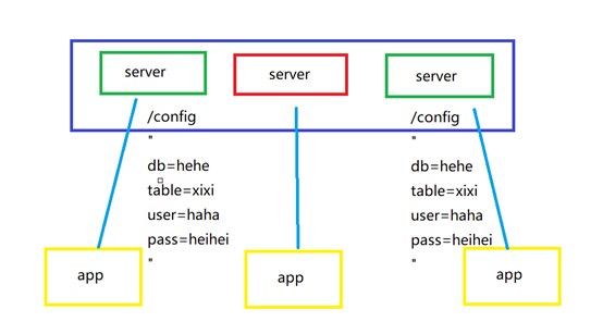 **通过创建znode将配置内容存入znode中,每台机器都查看同一个znode