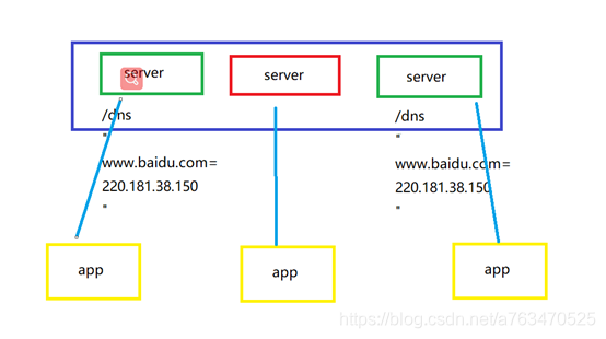 **通过创建znode将dns与ip对应内容存入znode中,每台机器都查看同一个znode