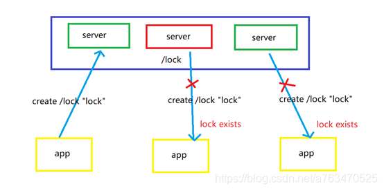 **多台服务器共同创建同一个znode,哪台机器创建成功,哪台机器访问资源,访问资源后删除节点