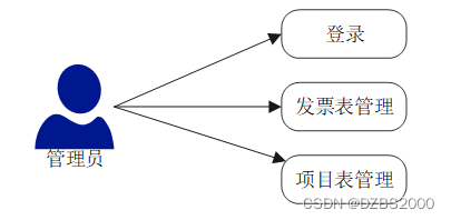 (3)确定好系统使用的技术,进行在线确认系统所划分的用户角色,并且根据用户角色划分确定所要设计的功能模块,对于企业财务发票管理系统的设计主要划分别为管理员和用户角色,并所使用的功能模块也相应不同,但是系统的数据库实现的内容是交互的,用户可以随时根据自己的需求信息查询,对于系统工作人员可以根据自己的分管内容进行在线信息的处理及操作,管理员获取到所有用户的详细数据信息,并根据需求进行第一时间处理解决。
