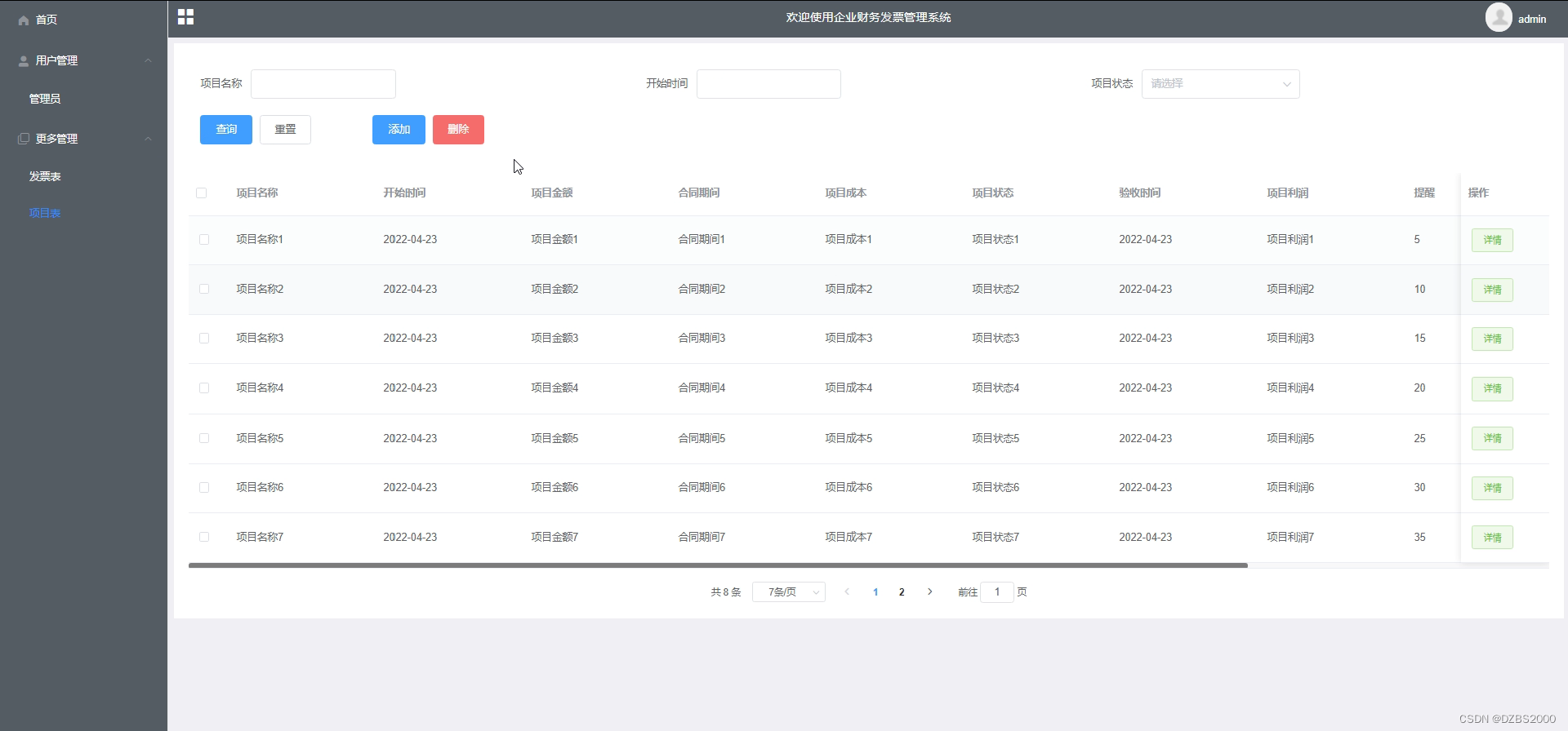 7 | 项目表管理 | 1.项目新增是否可以成功。 2.验证项目删除是否可以成功。 | 通过 |