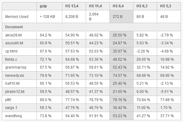 heatshrink 与 gzip 性能比较: