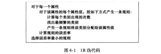 - 1规则(1-rule,1 R)选择单个属性作为决策依据,并且选择其中工作性能最好的那个属性;