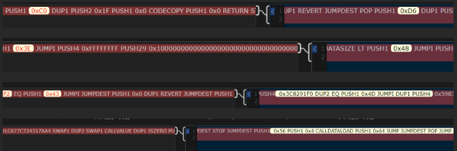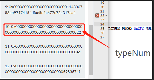 其逻辑为,我们需要比call多出栈一个参数,此参数为typeNum,所以将typeNum在栈里弄到相应位置,此合约更改为第一处更改在dup9(字节码指令为88)后添加一个dup12(8b)并将后边的dup9改为dup10(字节码指令由88改为89),后边将函数返回地址由ox8f改为0x90(由于多加了一个dup12指令,所以应将返回地址向后移一位)。