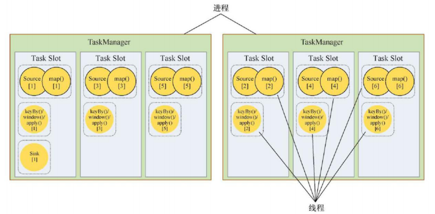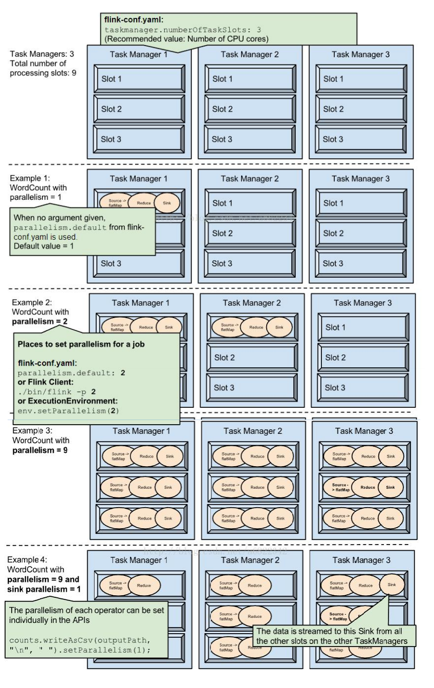 设置并行度为9,并且设置sink的并行度为1,则Source、Reduce将占用9个Slot,但是Sink只占用1个Slot