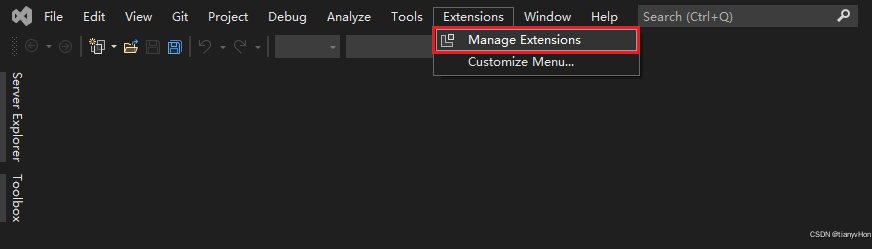 Visual Sudio,在菜单栏中选中Extensions,然后单击Manage Extensions,如下图所示: