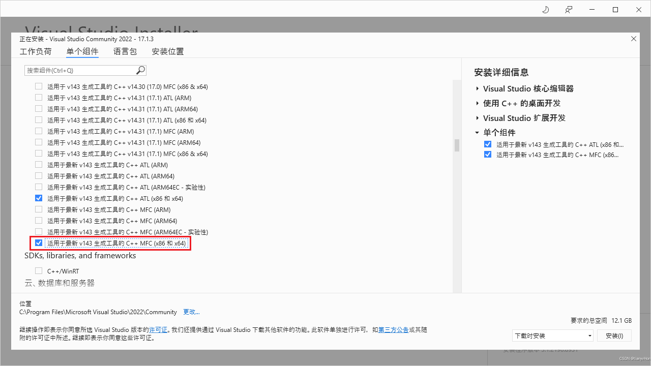 单个组件方面,默认勾选的我们不要取消,然后找到如下图所示勾选的组件并进行勾选,如下图所示: