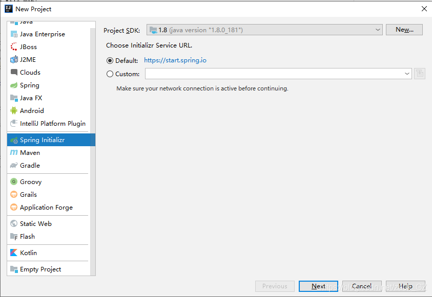 秉着跑不起来的代码不读的原则,首先我们需要搭建一个demo帮助我们阅读源码。我习惯用IDEA作为开发工具,所以这里也是借助IDEA阅读springboot源码。这里简便起见我直接使用IDEA的项目搭建工具Spring Initiallizr初始化一个springboot项目,过程比较简单
