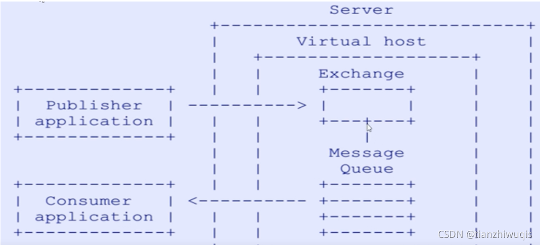 虚拟地址,是一个逻辑概念,用于进行逻辑隔离,是最上层的消息路由。一个Virtual Host里面可以有若干个Exchange和Queue,同一个Virtual Host里面不能有相同名称的Exchange或者Queue;