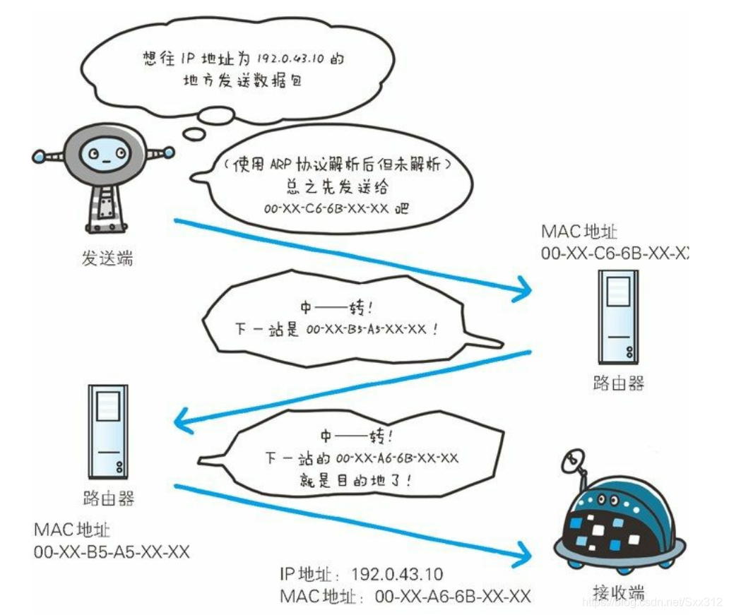 其中传输路线的选择,就和ARP协议(Address Resolution Protocol)地址解析协议,根据通信双方的IP地址就可以反查出对应的MAC地址,和路由选择(routing)有关了。