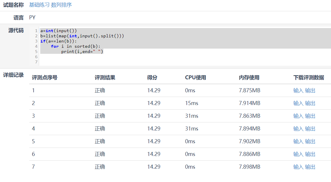 问题描述:给定一个长度为n的数列,将这个数列按从小到大的顺序排列。1<=n<=200