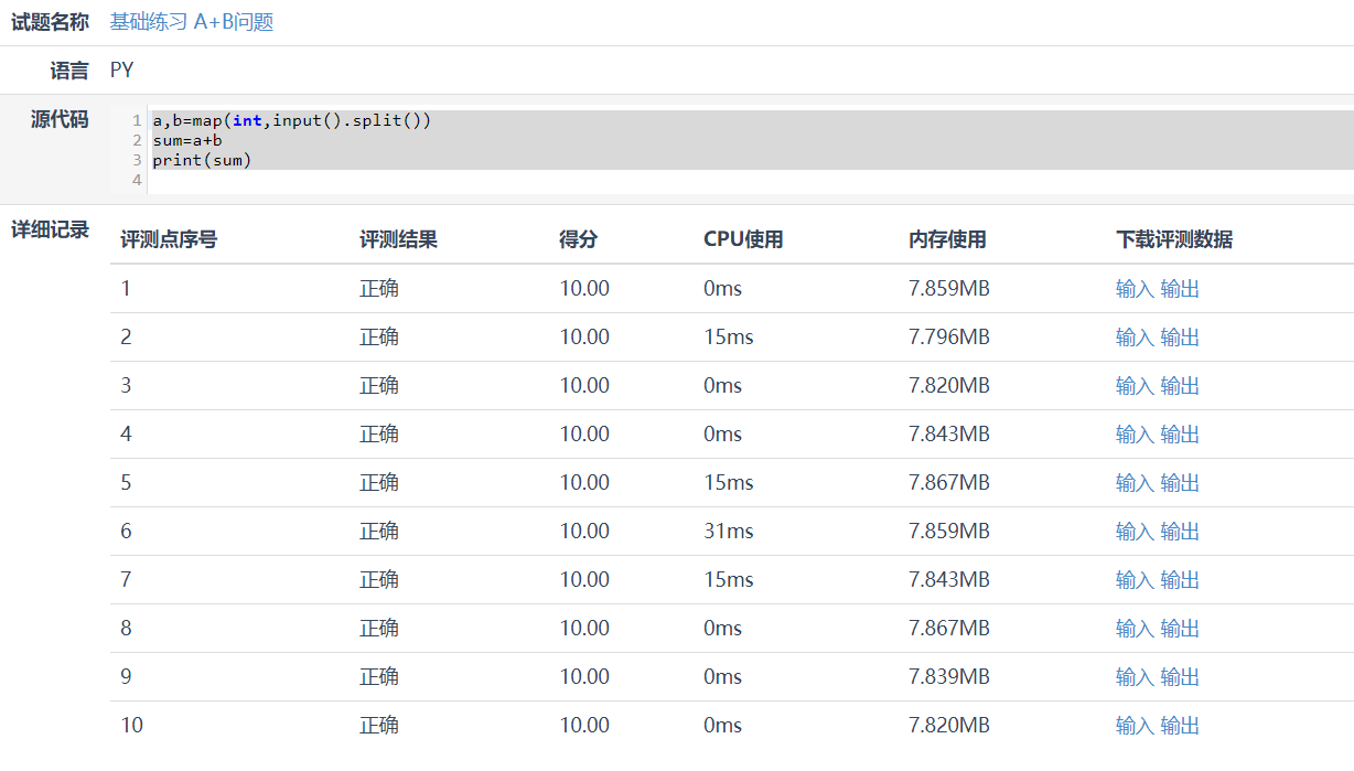 输出格式:输出一行,包括一个整数,表示A+B的值。