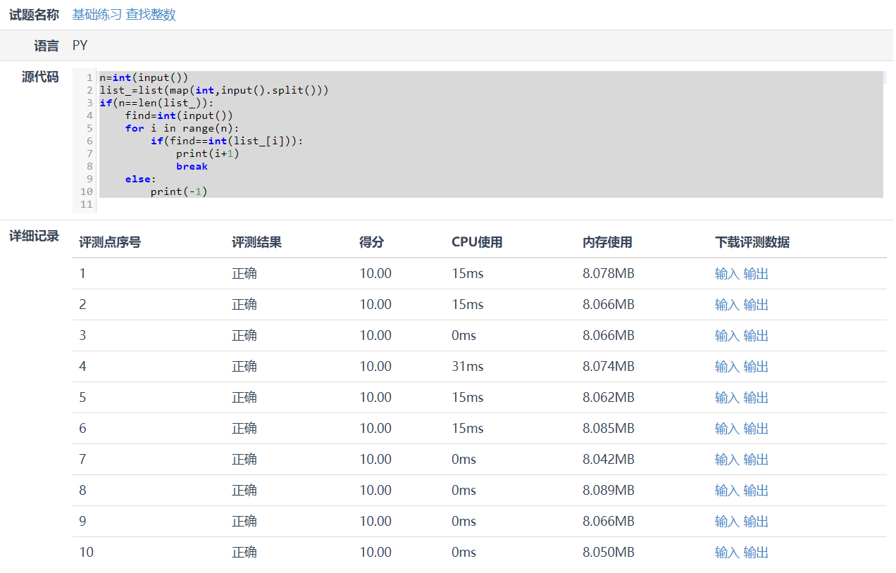 输出格式:如果a在数列中出现了,输出它第一次出现的位置(位置从1开始编号),否则输出-1。