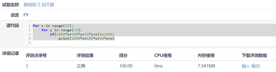 问题描述:1221是一个非常特殊的数,它从左边读和从右边读是一样的,编程求所有这样的四位十进制数。