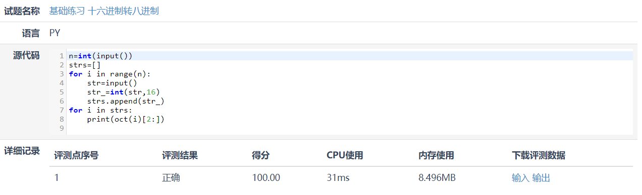 问题描述:给定n个十六进制正整数,输出它们对应的八进制数。