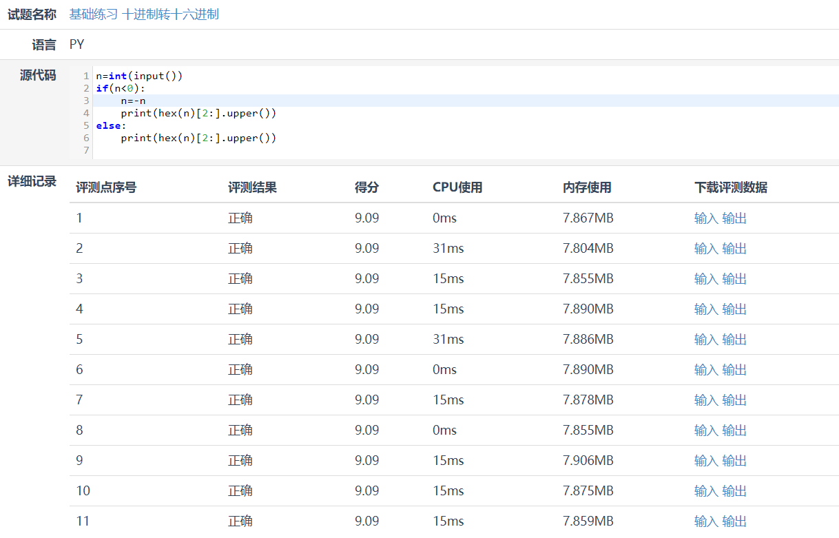 print(hex(n)[2:].upper())//取整数部分并转为大写