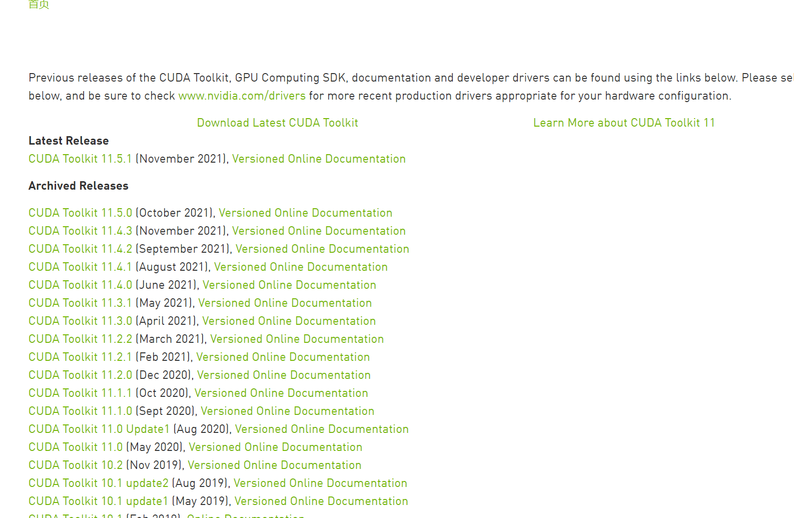 所以问题又来了,我们得下载CUDA,这里还得提一句,我们不是要下载最新版的CUDA,而是匹配自己GPU的版本,那么问题来了以前的版本又怎么找?