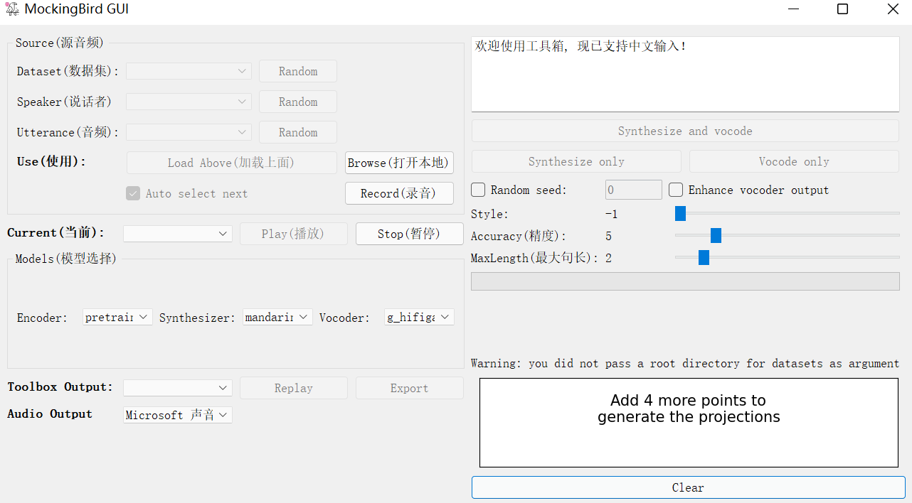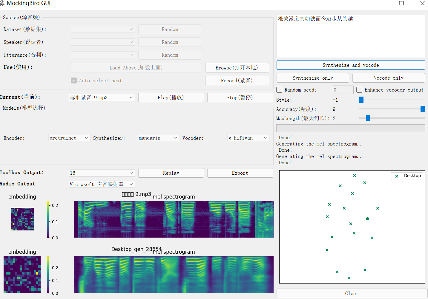 又费了些时间我终于跑出来了第一个AI模拟的声音,虽然说效果没有视频那么好吧。。。
