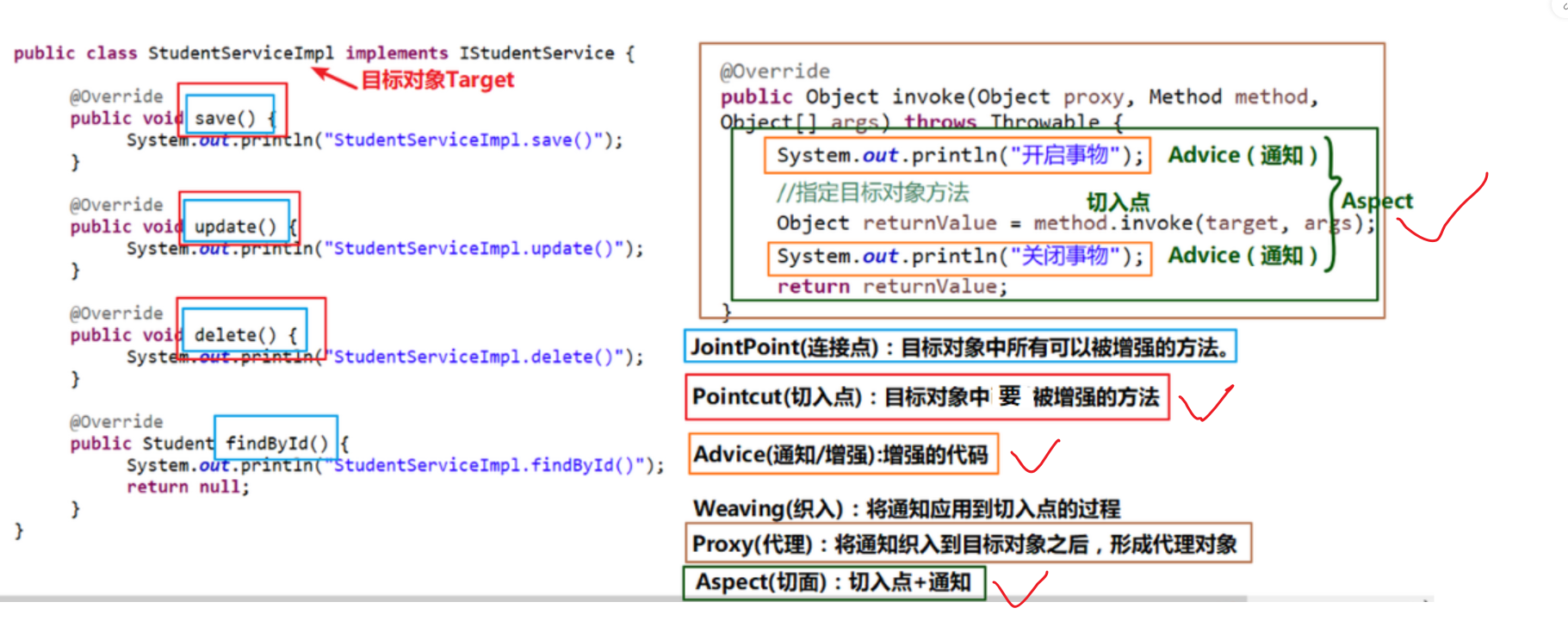 - 让关注点(事务处理、权限、日志)和业务代码分离。