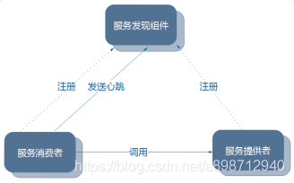服务提供者、服务消费者、服务发现组件这三个角色之间的关系大致如下
