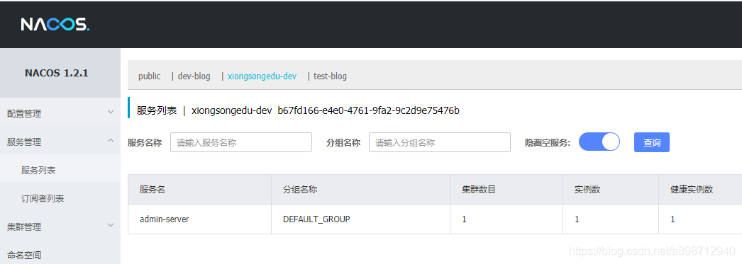 namespace: 541fc6de-b394-463c-8cea-5770a4f1de87 # 开发环境-nacos的命名空间ID