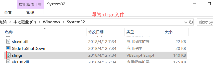 步骤2:找到slmgr文件所在位置,它在C盘的【C:\Windows\System32】