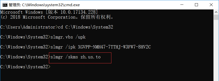 步骤6:再次在命令行中输入slmgr /skms zh.us.to