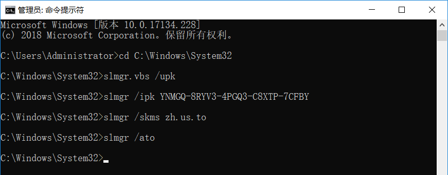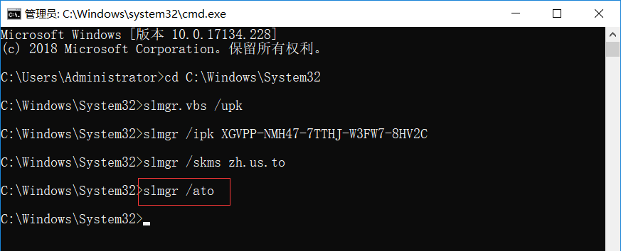 步骤7:再次在命令行界面输入slmgr /ato