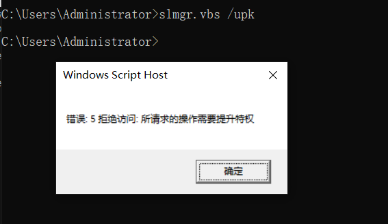 步骤1:打开命令行提示符,输入slmgr.vbs /upk