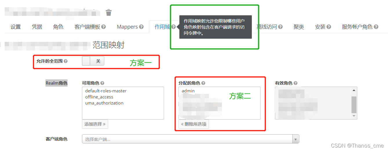 经过排查发现需要在keycloak 的客户端里设置一下作用域