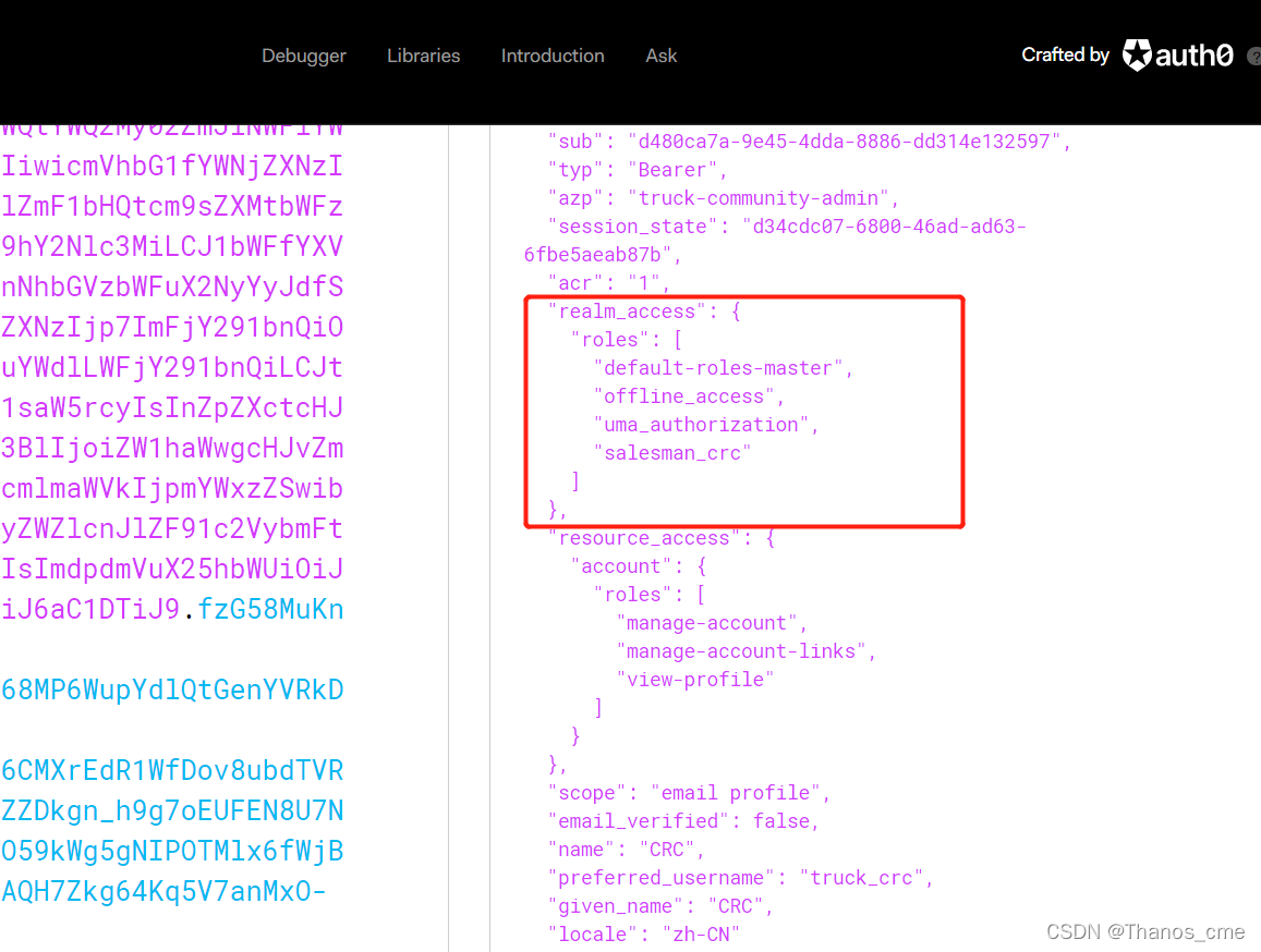 用户登录后获取到的token信息不包含角色信息(红框里面的内容)
