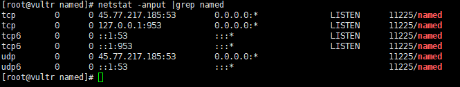 netstat -anput | grep named // 查看服务运行状态,UDP 53端口在监听