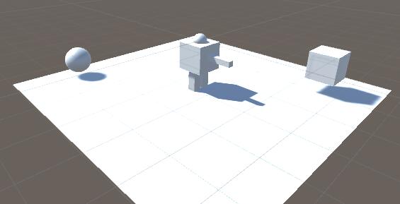 在场景中用Cube搭个简易的小人(插个标志标明小人的前方向),以一个Plane为地面,用一个Cube与一个Sphere作为标识,容易辨别视角移动。