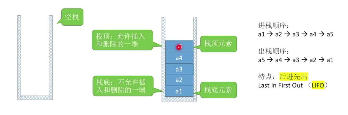 栈(stack):是只允许在一端(表尾)进行插入或删除的线性表