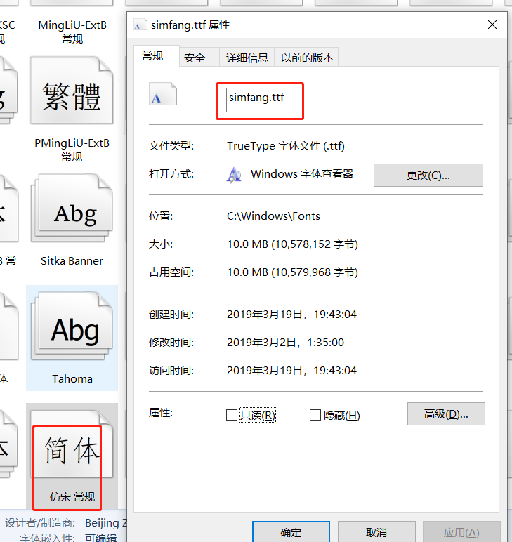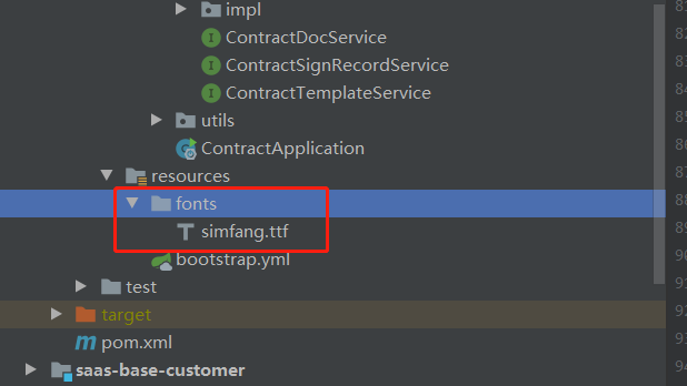 - 在window下, 从 C:\Windows\Fonts 文件夹中,复制仿宋字体(simfang.ttf)到maven 项目中 src/main/resources/fonts/simfang.ttf